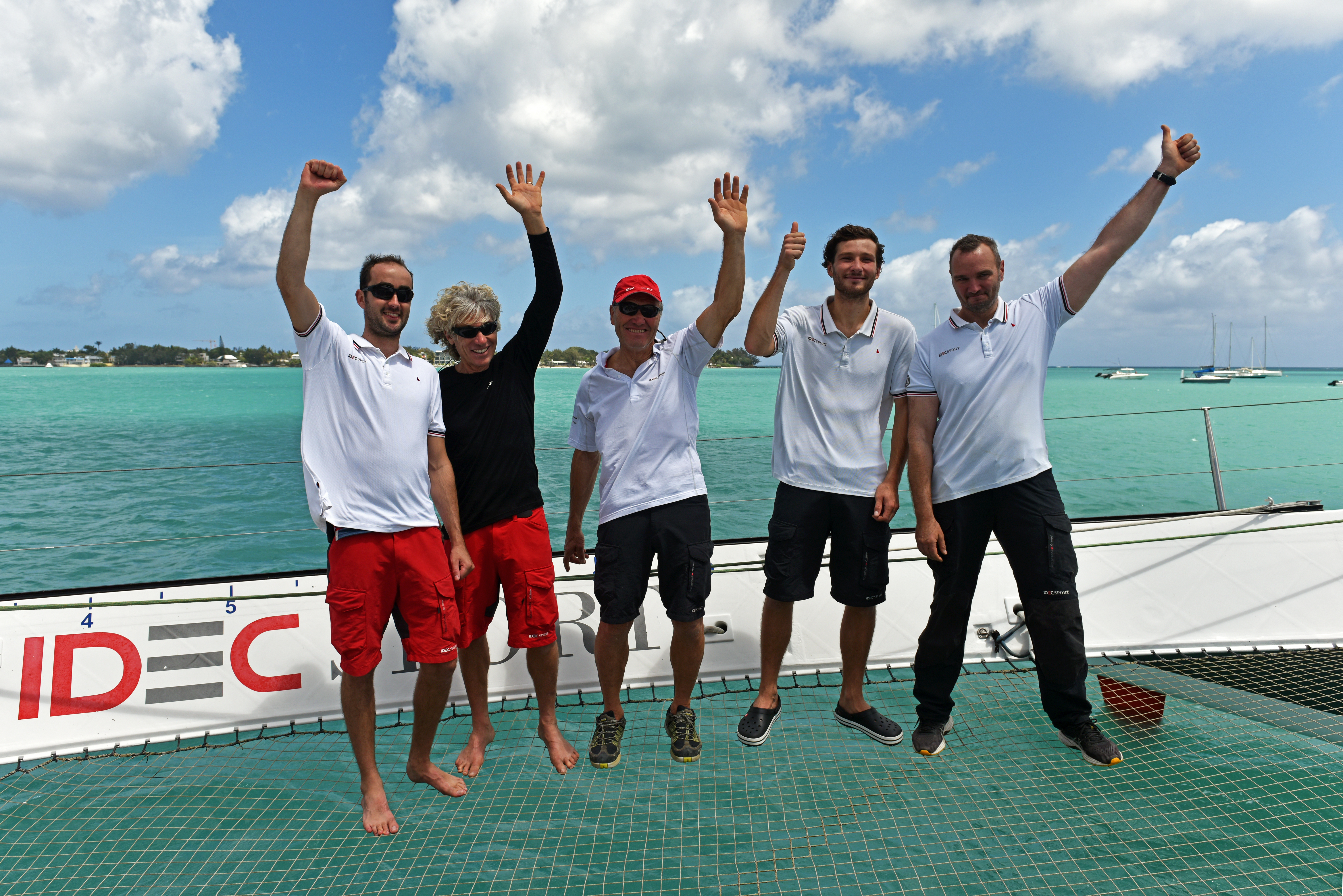 L'équipage d'IDEC SPORT, avec de gauche à droite: Antoine Blouet, Christophe Houdet, Francis Joyon, Corentin Joyon et Bertrand Delesne. Photo © Fred Cusin / ALEA / IDEC SPORT