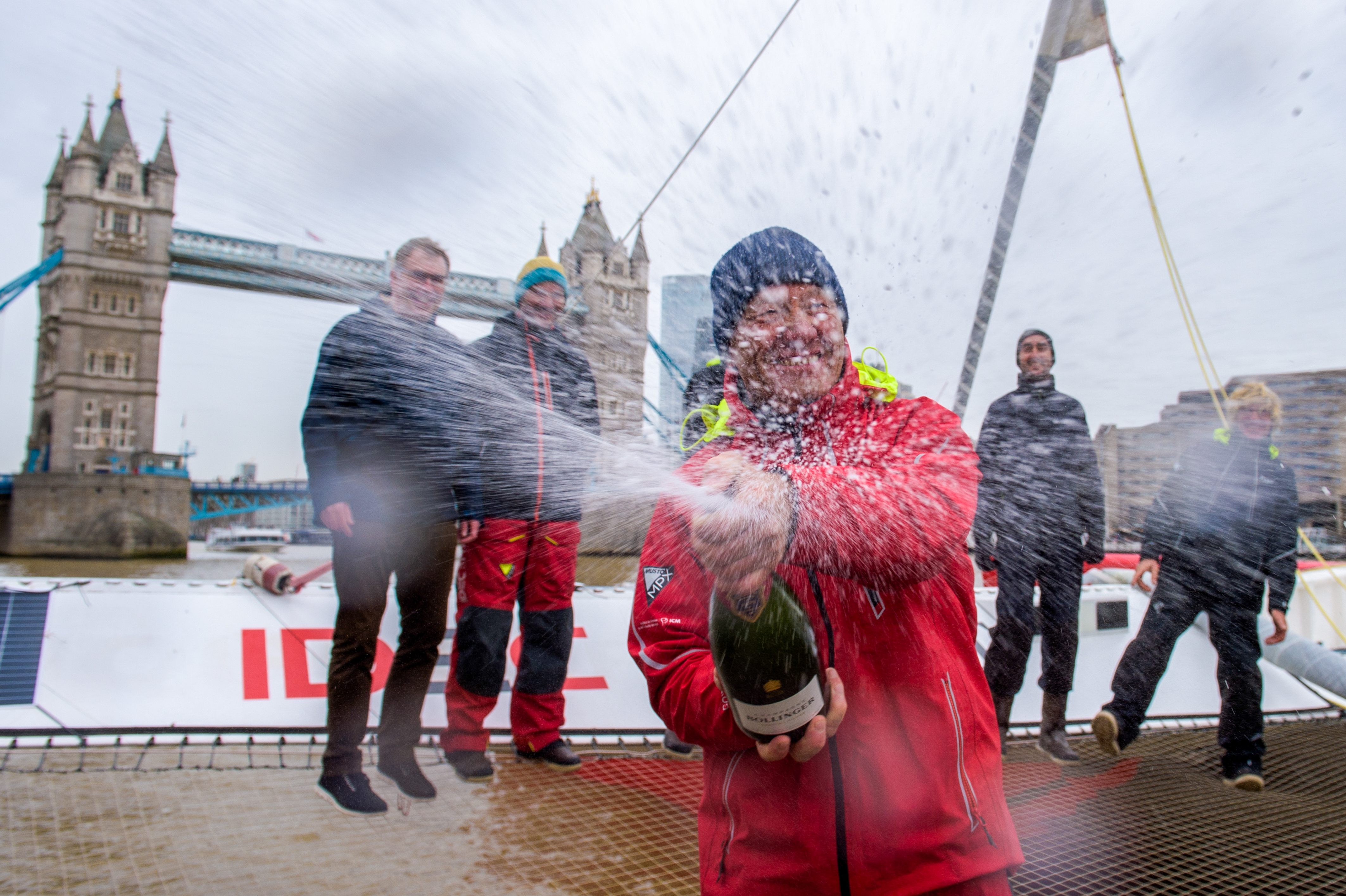 Londres - Arrivée IDEC SPORT - RECORD DE LA ROUTE DU THÉ.